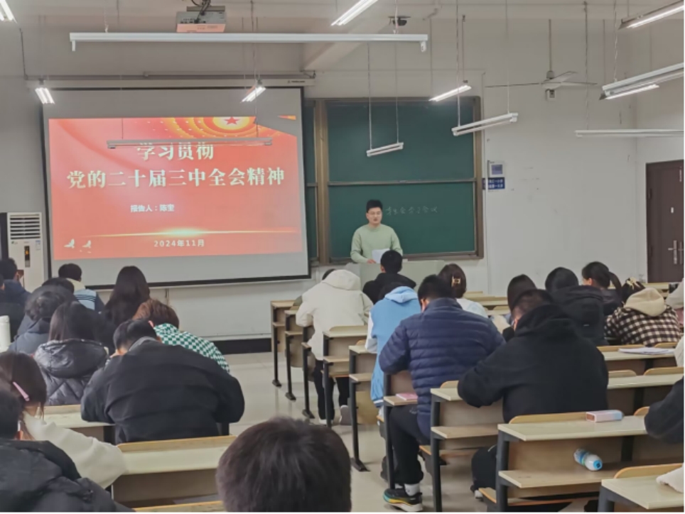 院团委书记崔余龙,副书记陈奎分别组织学生会骨干、各班级团支书深入学习贯彻党的二十届三中全会精神和习近平总书记考察安徽重要讲话精神。通过深入解读、系统梳理,引导同学们认真思考,多方位理解习近平总书记重要讲话精神,现场学习氛围浓厚,同学们积极讨论,收益良多。
