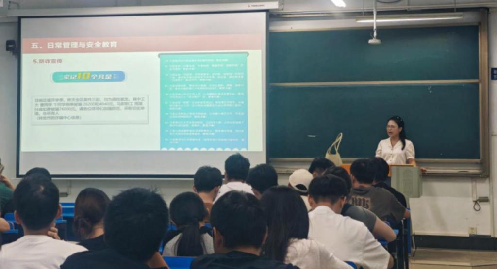 为进一步强化学生管理与安全教育工作,会议还融入了防诈宣传主题。结合近期高发的“虚假招聘”“培训贷”“信息泄露”等求职陷阱案例,辅导员揭示了常见诈骗手法,提醒同学们警惕付费内推、乱收费用工等不规范行为,务必通过官方渠道核实企业资质与招聘信息,保护人身与财产安全。