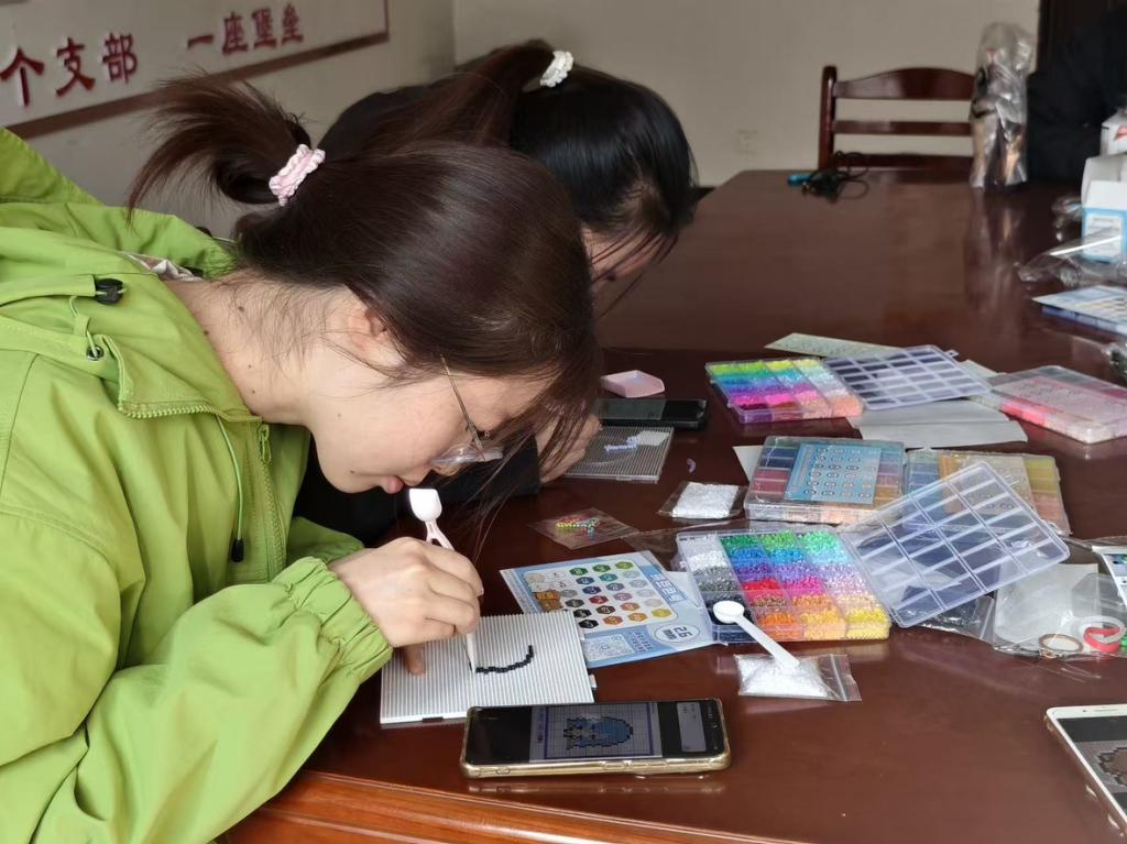 活动室组织开展了趣味“拼豆”手工创作活动,吸引了众多同学积极参与。