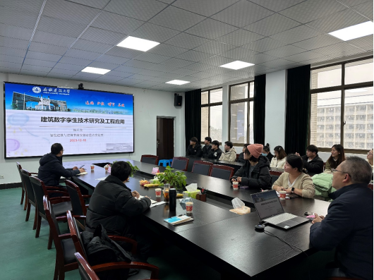 师生作了题为“建筑数字孪生技术研究及工程应用”的学术报告。建筑与工程管理系、土木工程系部分教师及研究生参加了报告会。报告会由院长于峰教授主持。