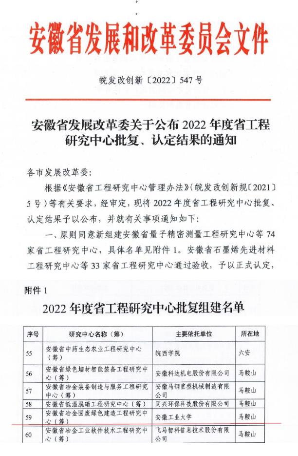 近日,安徽省发展与改革委公布了2022年度省工程研究中心批复、认定结果名单。由我校牵头申报的“安徽省冶金固废绿色建造工程研究中心(筹)”(以下简称“中心”)获批建设立项,这也是我校获批的第4个省发展与改革委工程研究中心。